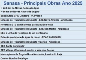 No período entre outubro/24 e setembro/25 a Sanasa, investiu R$ 371,5 milhões em obras de melhoria dos sistemas de água e esgoto.