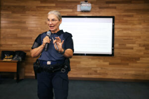 A comandante Maria de Lourdes reforçou a importância de abordar um tema tão relevante hoje, como a violência doméstica. “Temos visto na imprensa uma série de casos que ainda acontecem. Este evento contribui para que as mulheres saibam onde buscar ajuda no município, como o Programa Gama, a Sala Lilás e outras iniciativas da prefeitura que visam auxiliá-las a saírem dessa situação de violência. Que essa abordagem possa ser replicada em todos os espaços possíveis”, disse Maria de Lourdes.